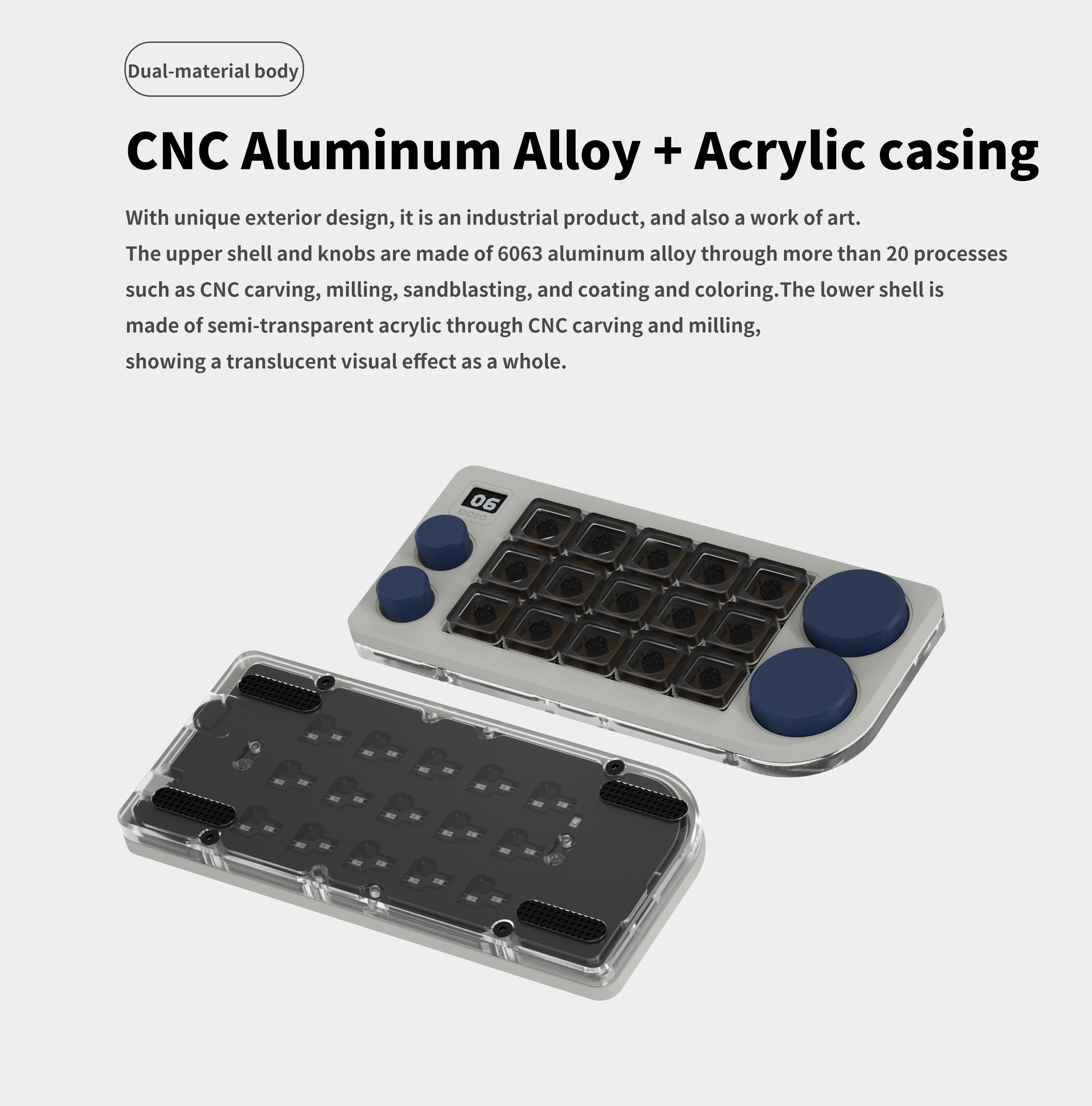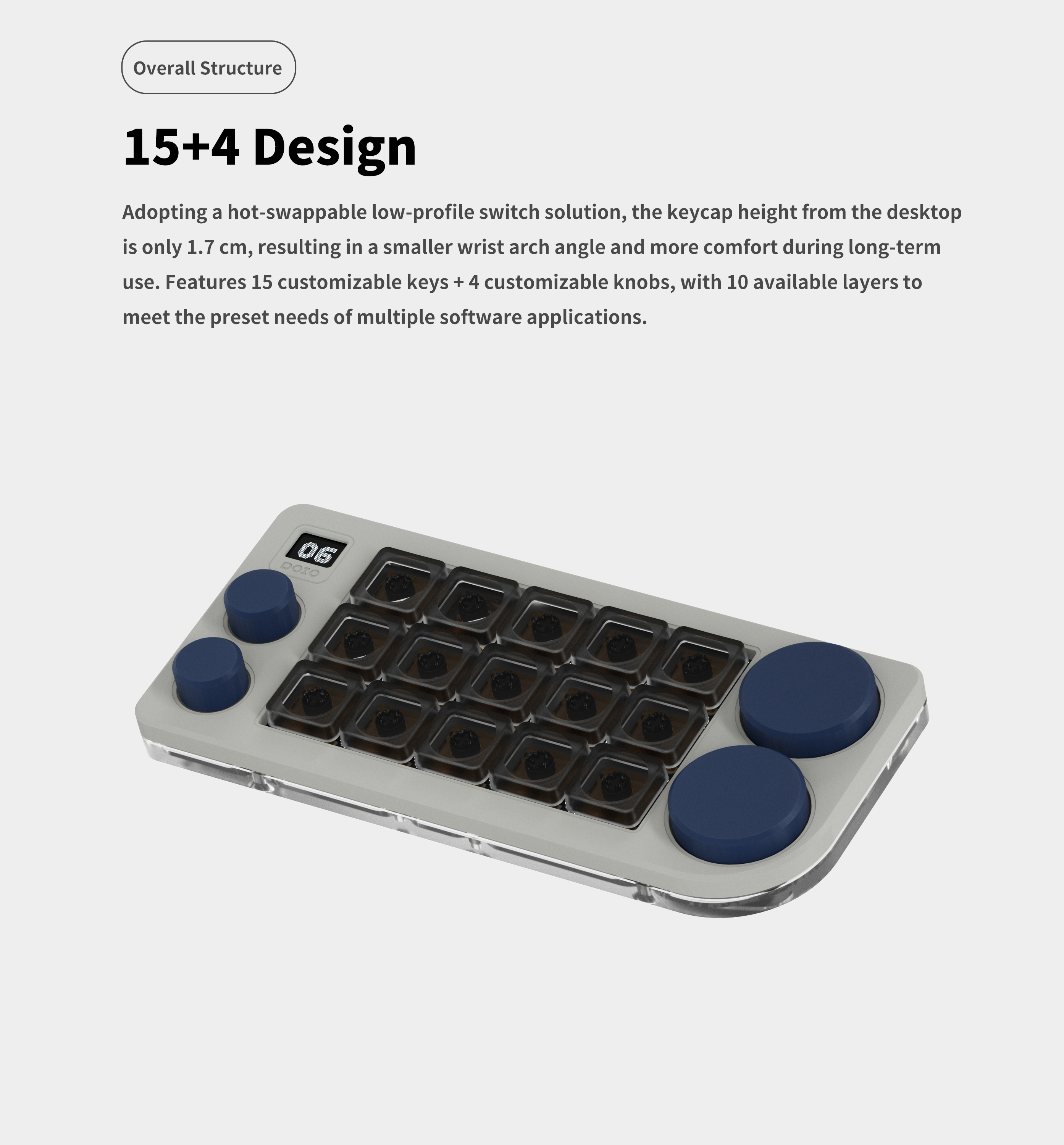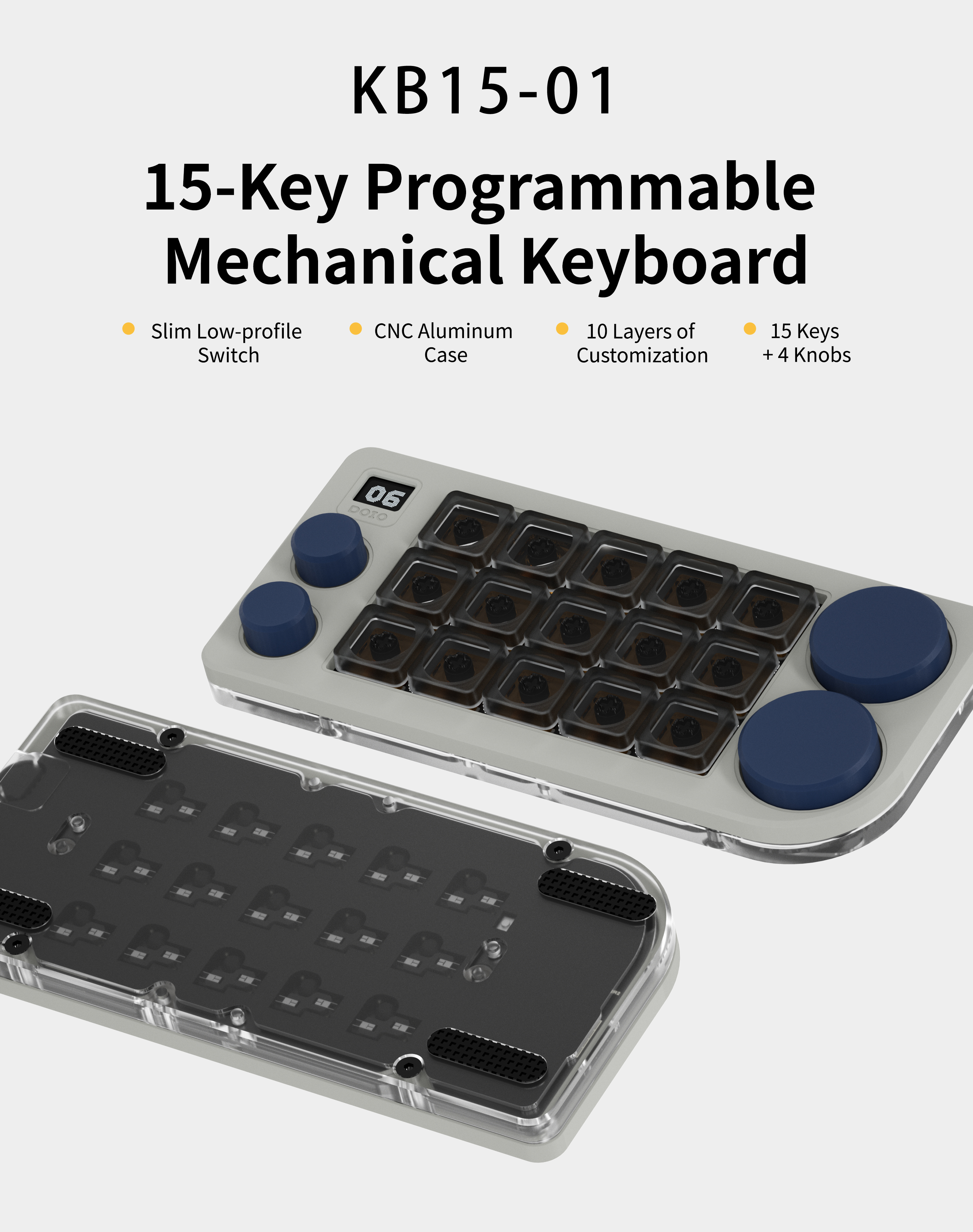 DOIO 15 keys Programmable Multifunction Mechanical keyboard Translucent acrylic KB15-01