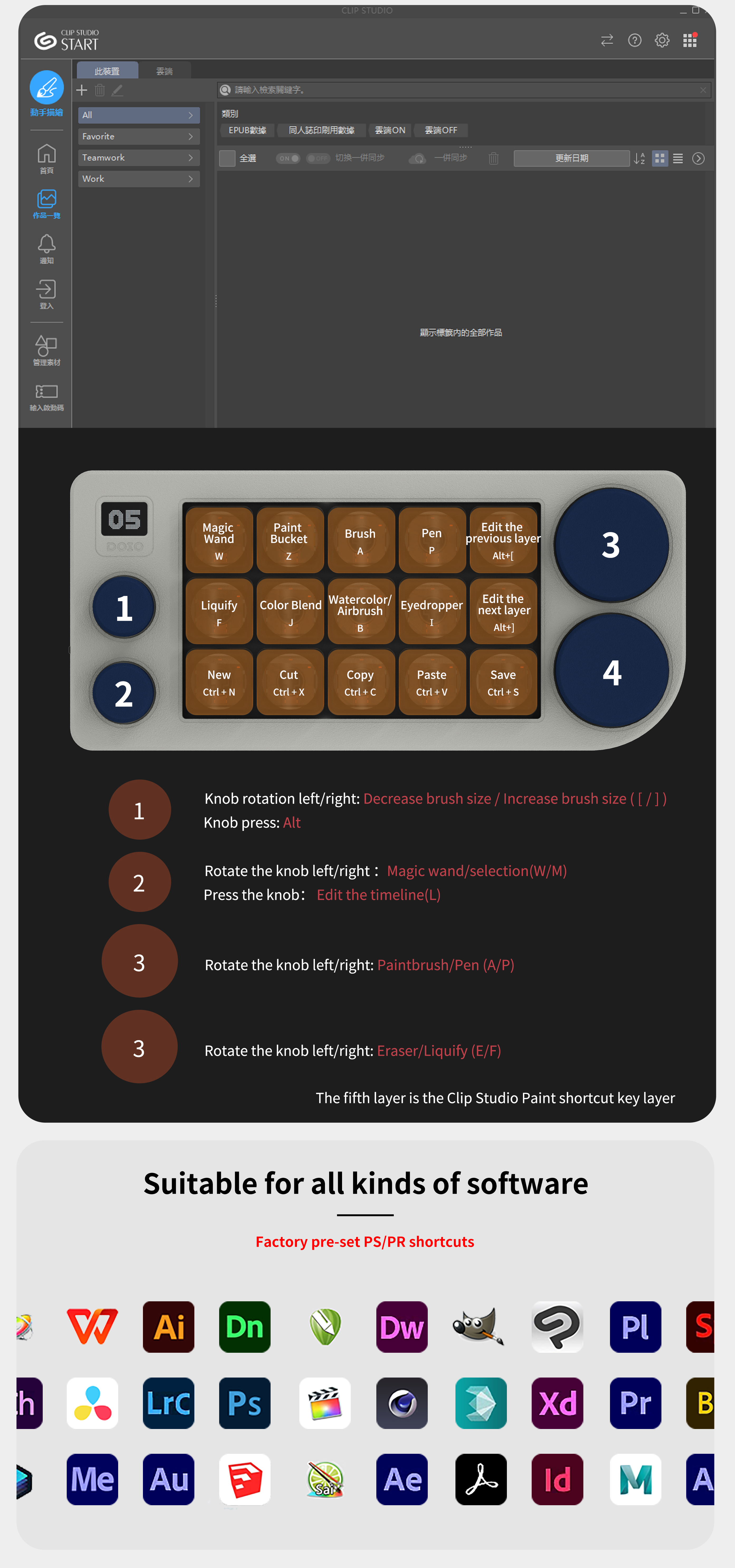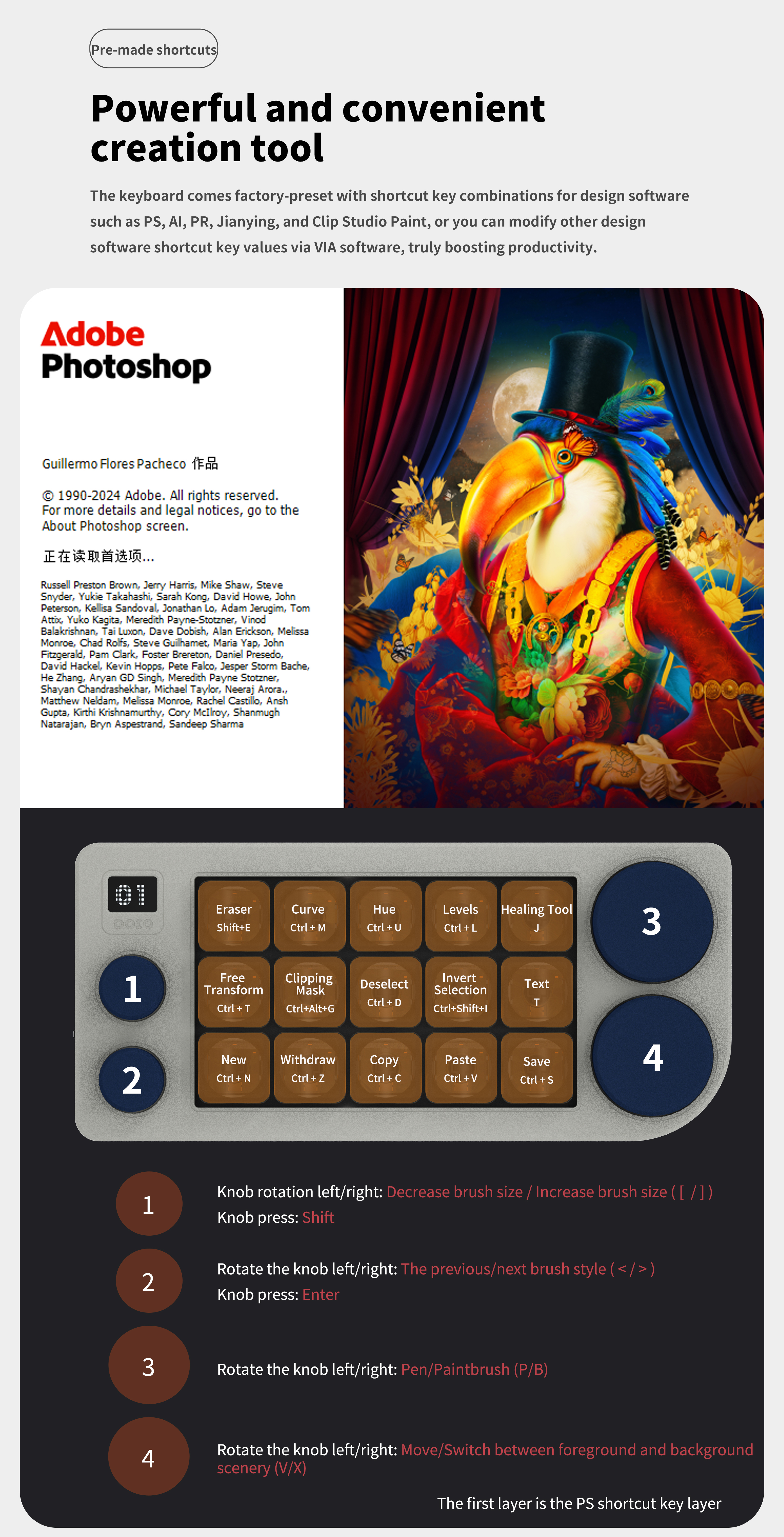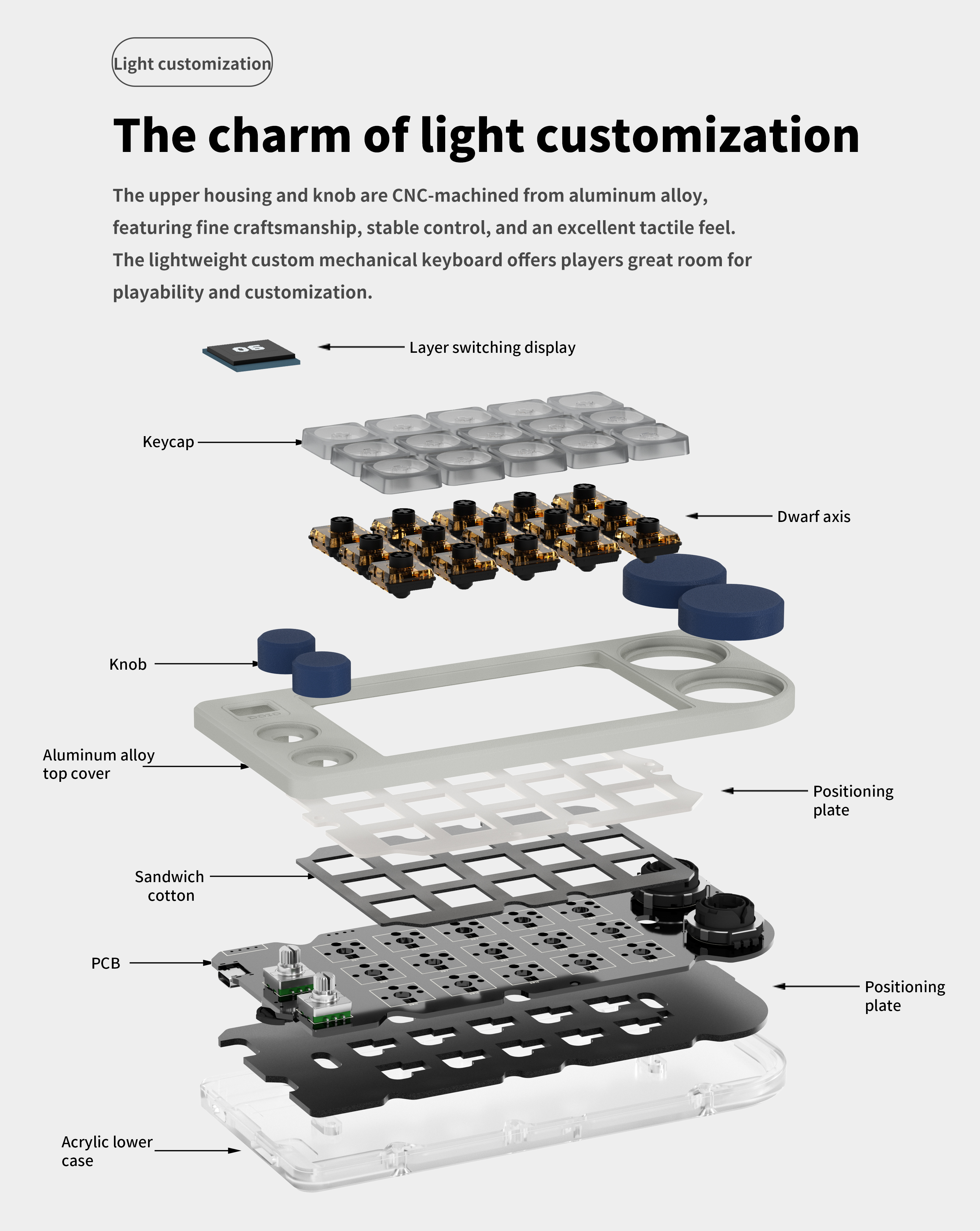 DOIO 15 keys Programmable Multifunction Mechanical keyboard Translucent acrylic KB15-01